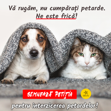 Eu am semnat petiția Declic pentru interzicerea petardelor și artificiilor. Semnează și tu, animăluțele îți vor mulțumi.